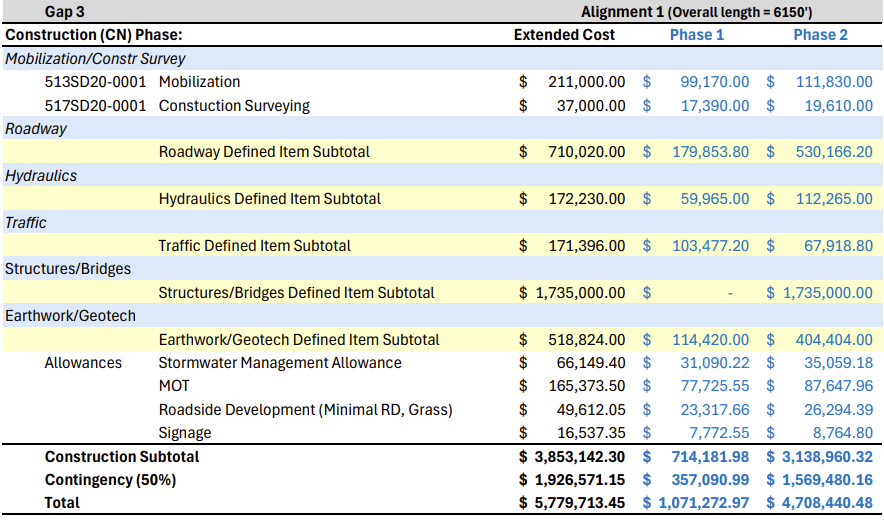 Federal funding is anticipated to complete the segment within Prince William Forest Park. Cost estimates for Gap 2 and Gap 3 (with inflation predictions for future years) are: